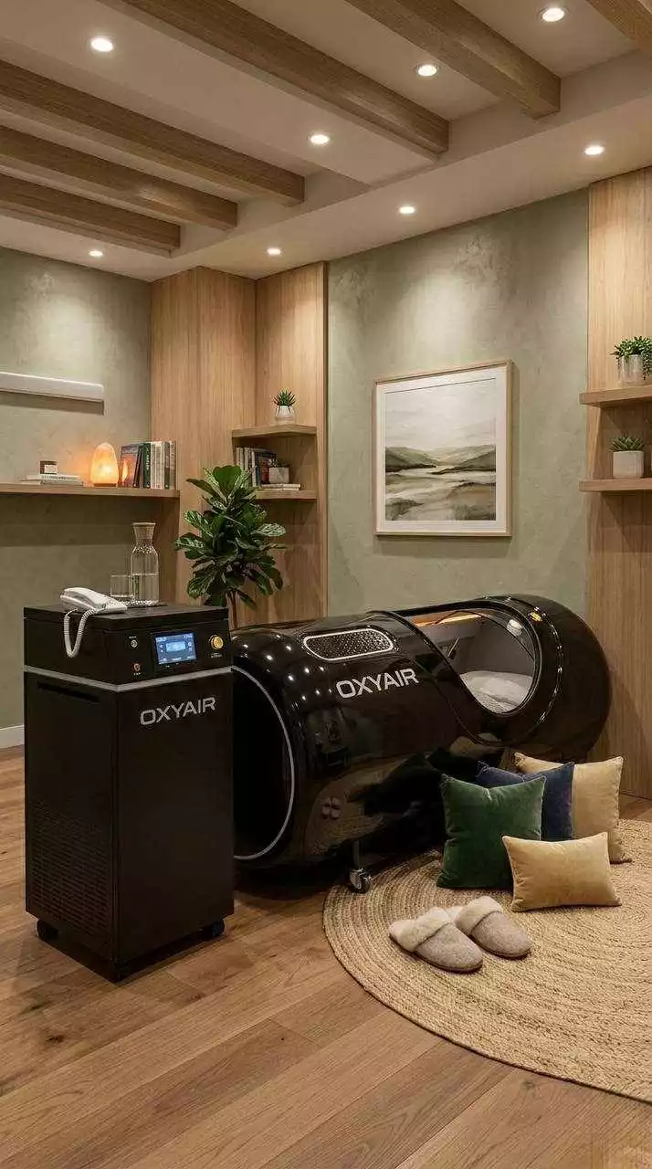 The chamber improves the cardiovascular system by changing the gas composition of the blood. It is a hermetically sealed oxygen capsule with pressure inside that is higher than atmospheric.